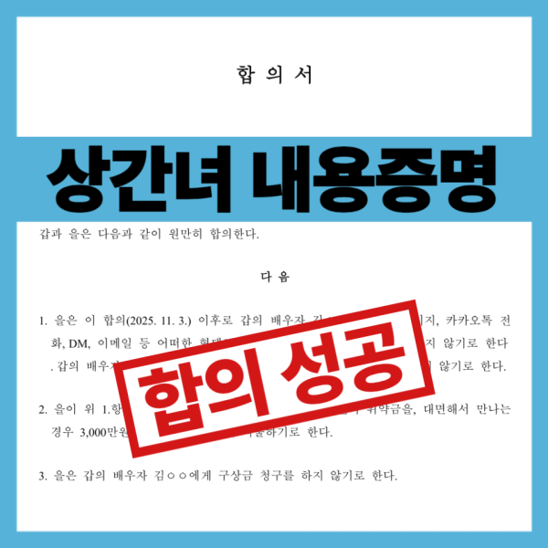 강력한 '위약벌' 조항 : "향후 남편과 연락 시 1회당 100만 원, 만날 시 3,000만 원을 지급한다"는 조항을 넣어, 합의서가 단순한 종잇조각이 아닌 실질적인 구속력을 갖도록 완성했습니다.